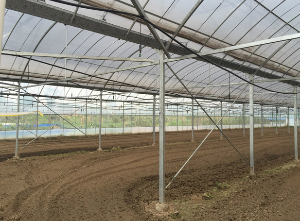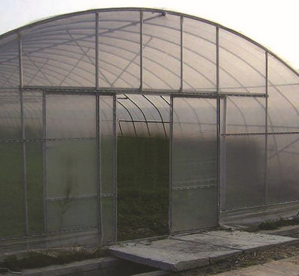 溫室材料全部采用熱鍍鋅圓管,側(cè)窗通風采用手動卷簾,卷膜高度約1m。薄膜由鍍鋅或鋁合金卡槽和透氣塑鋼絲卡固定,美觀實用,耐銹蝕。